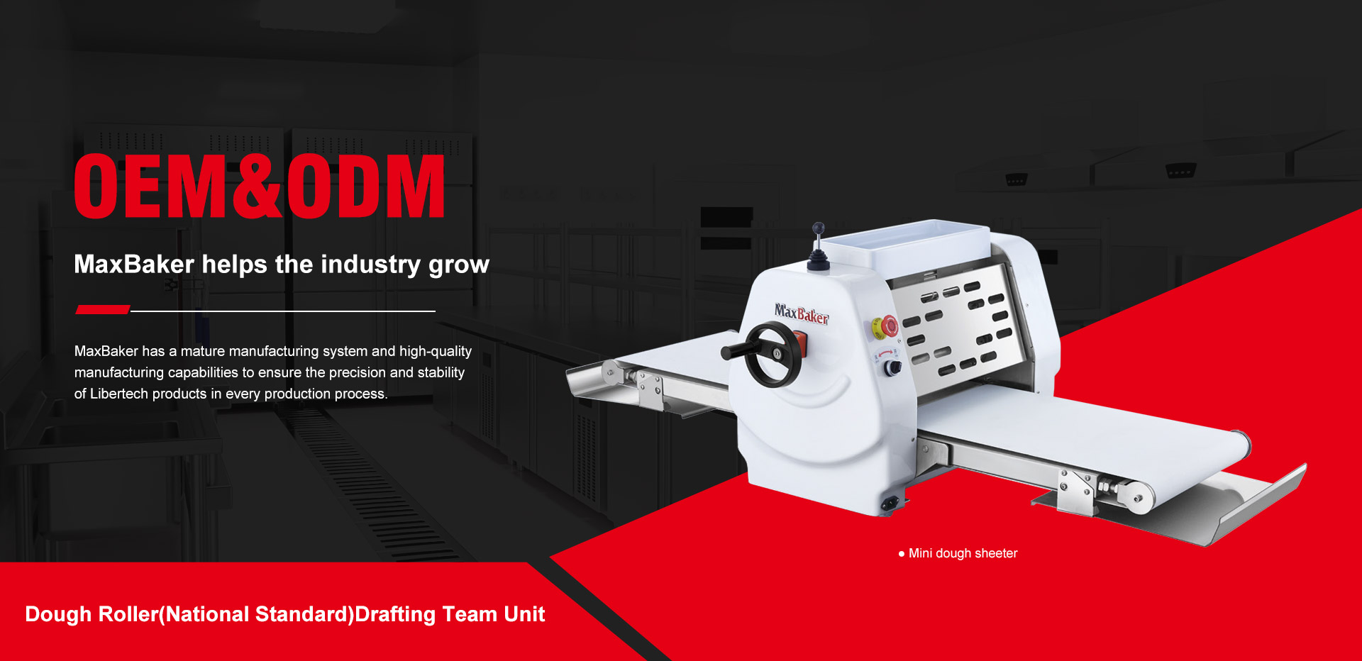 Guangdong MaxBaker Bakery Equipment Technology CO.,LTD.(formerly the Libaoda company),as a mature food machinery production enterprise in China,from a brand and a product in the early days of the factory,after more than 20 years of development,to now with a number of patented products "MaxBaker"high-end baking equipment brand,during the period has been adhering to the road of innovation and transcendence.And become the dough roller(national standard)drafting team unit.